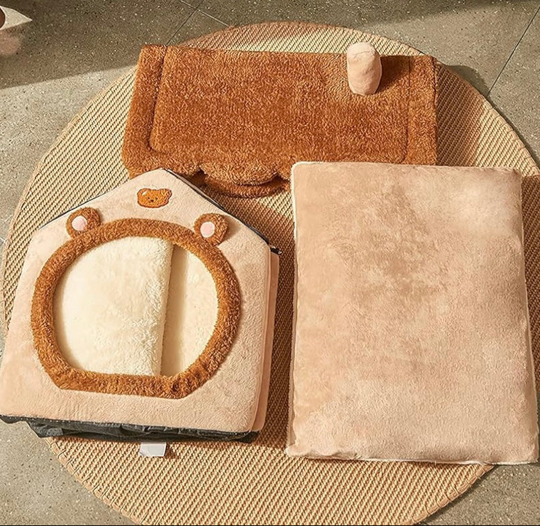 Cama tipo refugio, suave y acogedora.